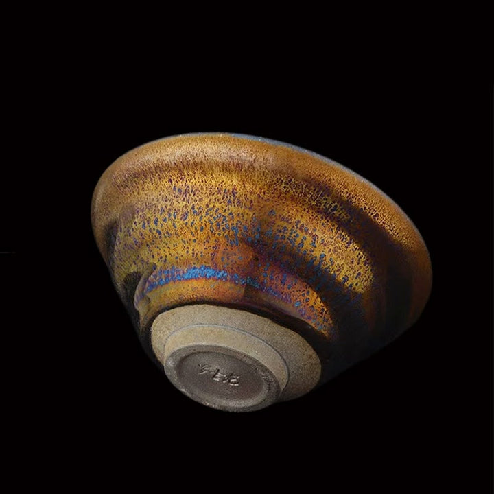 これらのカップは、色鮮やかな「特殊効果」を放つ、濃く厚い釉薬で愛されています。これらの特殊な模様は、高温焼成によって釉薬が結晶化し、美しい模様を描き出すことで実現されます。縞模様、羽根模様、油染みなどが現れることがあります。