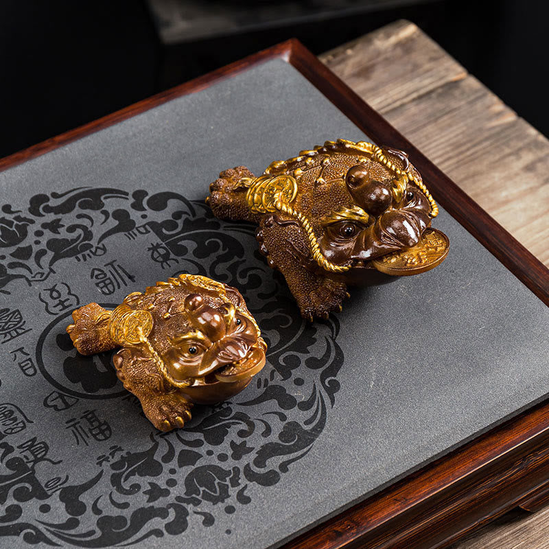Buddha Stones色が変わる風水 富と幸運のカエル 銅貨 ティーペット 樹脂製置物 装飾