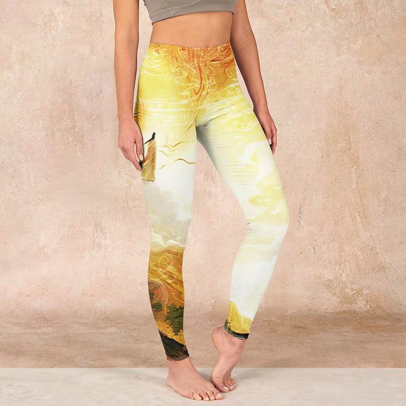 • デザインインスピレーション:このレギンスには、幸運、繁栄、そして精神的な高揚を象徴する金色の瑞雲がデザインされています。これらの雲は、ポジティブなエネルギーと祝福と結び付けられることが多く、地上と神々の調和のとれた繋がりを表し、様々な文化における縁起の良いシンボルの美しさと重要性を称えています。