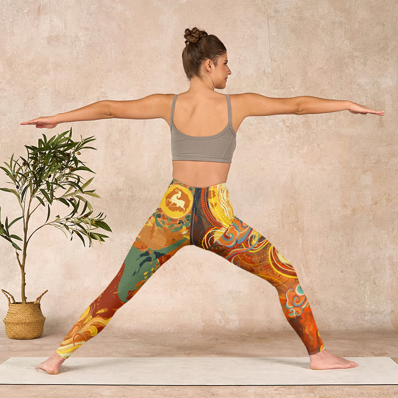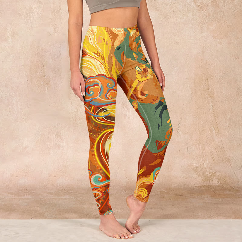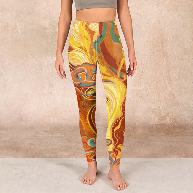 デザインインスピレーション:このレギンスには、繁栄、幸運、そして神との繋がりを象徴する、縁起の良い金色の雲と海の波模様があしらわれています。鮮やかな雲模様は、静けさと前向きな気持ちを呼び起こし、着る人に楽観主義と人生の美しい可能性を受け入れるよう促します。