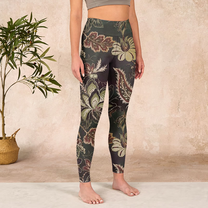 Buddha Stonesオリーブフローラルプリント スポーツフィットネスレギンス レディース ヨガパンツ - image 1