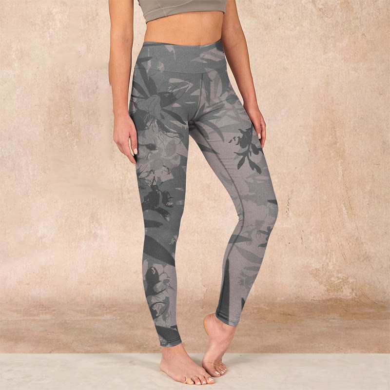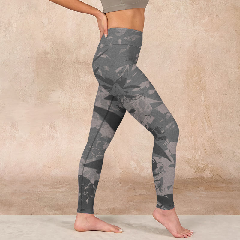 Buddha Stonesグレーリーフプリント ジムレギンス レディース ヨガパンツ