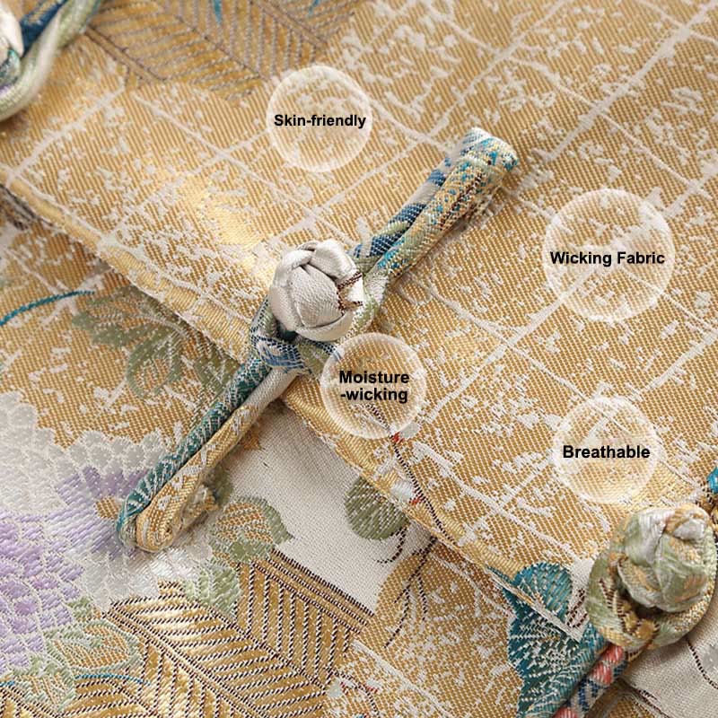 Buddha Stonesマンダリンダック 牡丹 花 カエルボタン 長袖 メンズ ジャケット ポケット付き