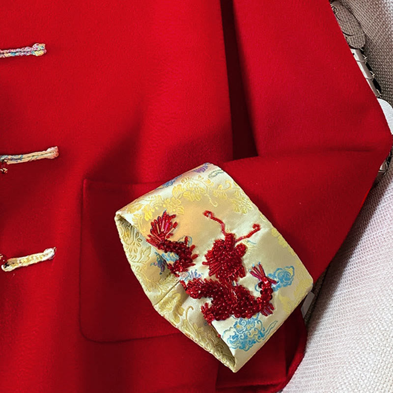 Buddha Stones冬 刺繍 ボタン デザイン 長袖 レディース コットン ジャケット ポケット付き - クリムゾン - US6、 UK/AU10、 EU38 (XL) - image 0
