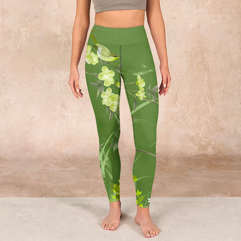 デザインインスピレーション:このレギンスには、中国文化において喜び、繁栄、そして自然の美しさを象徴するカササギ、枝、花、草がデザインされています。カササギは幸運と幸福の前兆とされ、花は生命力と再生、草は回復力の象徴です。これらが調和し、生命の豊かさとすべての生き物の繋がりを表現しています。