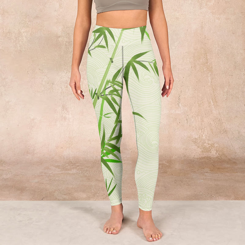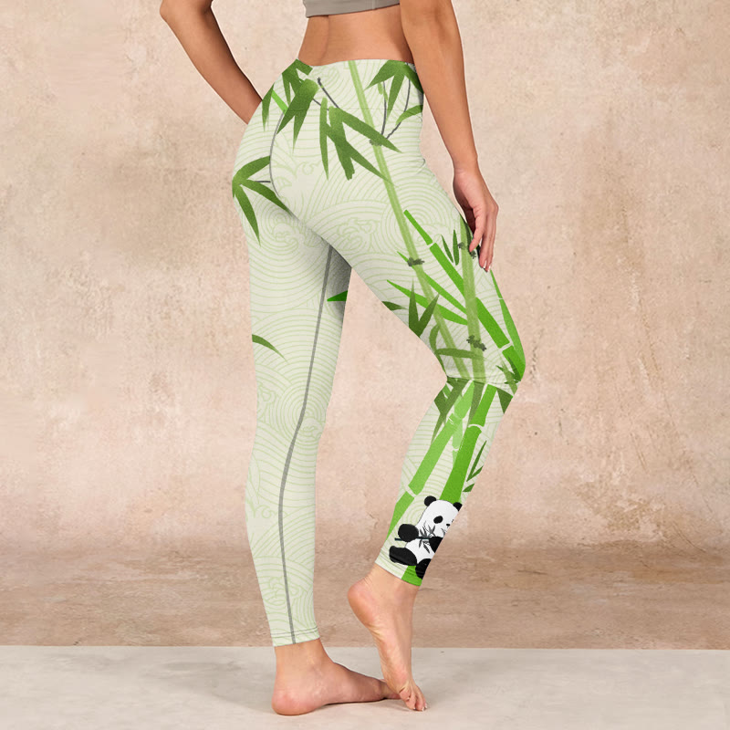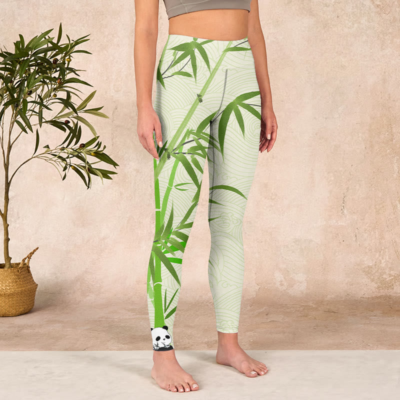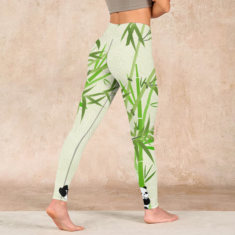 デザインインスピレーション:このレギンスは、縁起の良い雲を背景に、青々と茂る竹とパンダをあしらったデザインで、調和、回復力、そして幸運を象徴しています。竹は力強さとしなやかさを、パンダは平和と保全を体現しています。縁起の良い雲は、自然の美しさと生命の繋がりを象徴しています。
