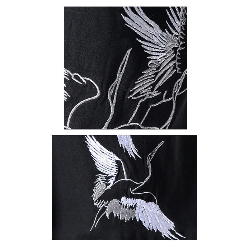 白鶴刺繍ドローストリングパンツは、長寿と平和を象徴する精巧な白鶴のデザインが特徴です。ウエストは快適なドローストリング仕様です。通気性に優れた生地を使用したハーレムスタイルのパンツは、動きやすくリラックスした着心地を約束します。便利なポケットも付いているので、使い勝手も抜群です。個性的な鶴の刺繍が、意味深いタッチを添えます。象徴性と着心地を重視する方にぴったりです。💕
