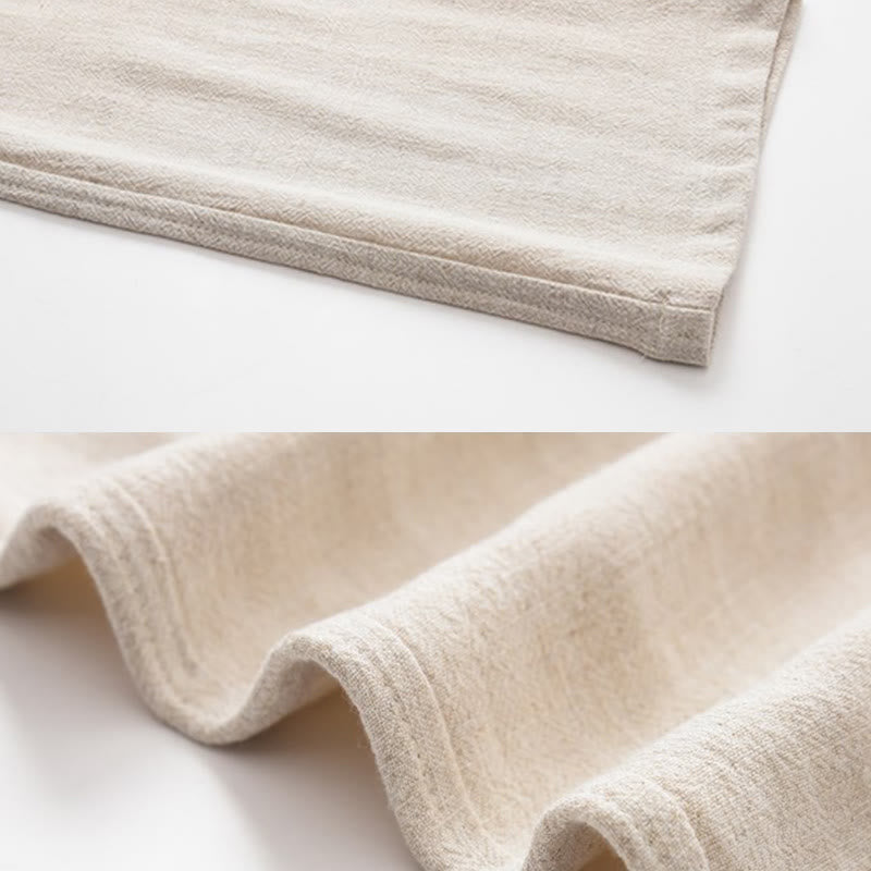 Buddha Stones春夏 無地 メンズ ドローストリング リネン パンツ ポケット付き