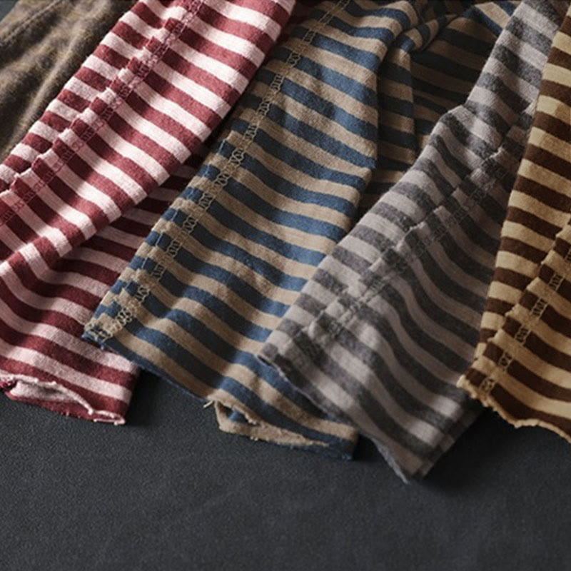 Buddha Stones春 ストライプ柄 長袖 レディース コットン パーカー - image 18