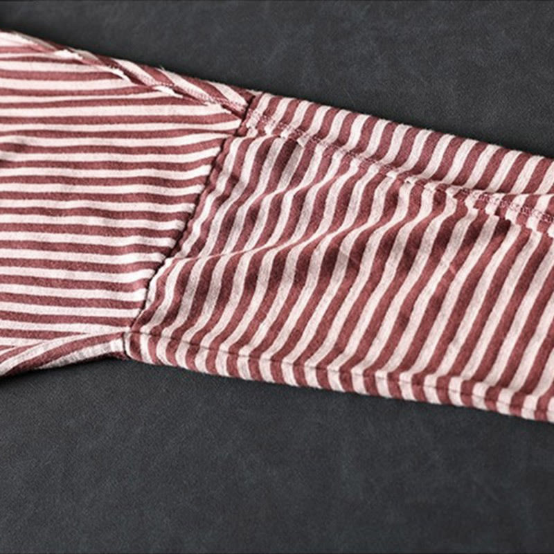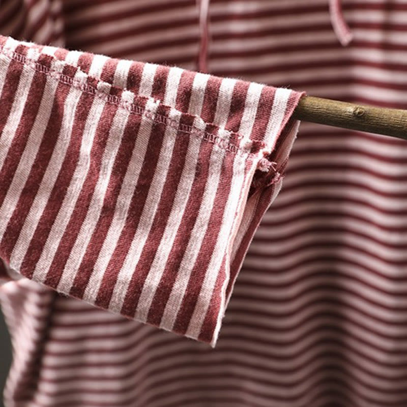 Buddha Stones春 ストライプ柄 長袖 レディース コットン パーカー - ダークレッド - US4-8/10、 UK/AU8-12/14、 EU36-40/42 (F) - image 2