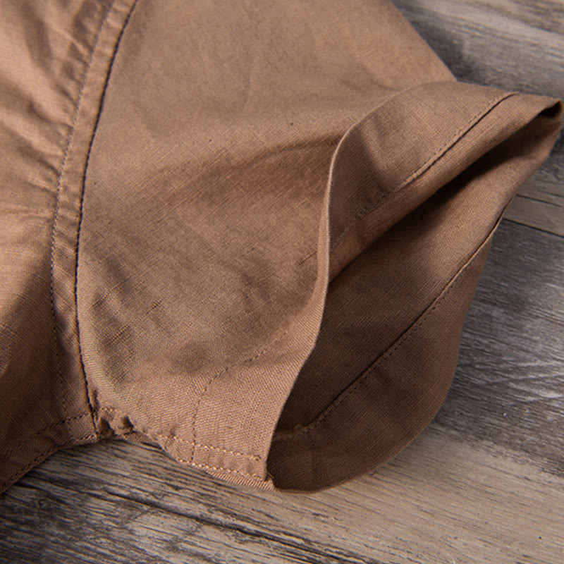 Buddha Stonesデイリー 無地 パッチ カラーマッチングデザイン メンズ 半袖 コットンリネン シャツ - image 15
