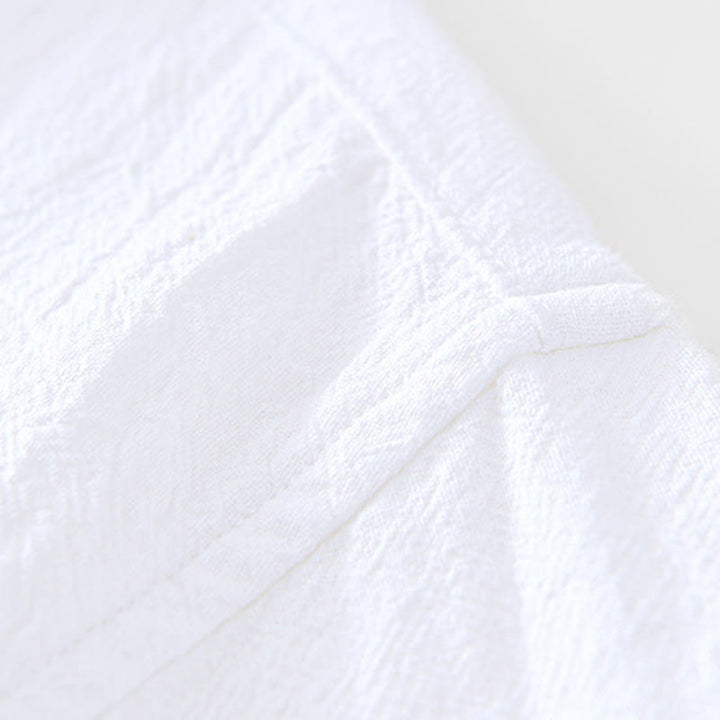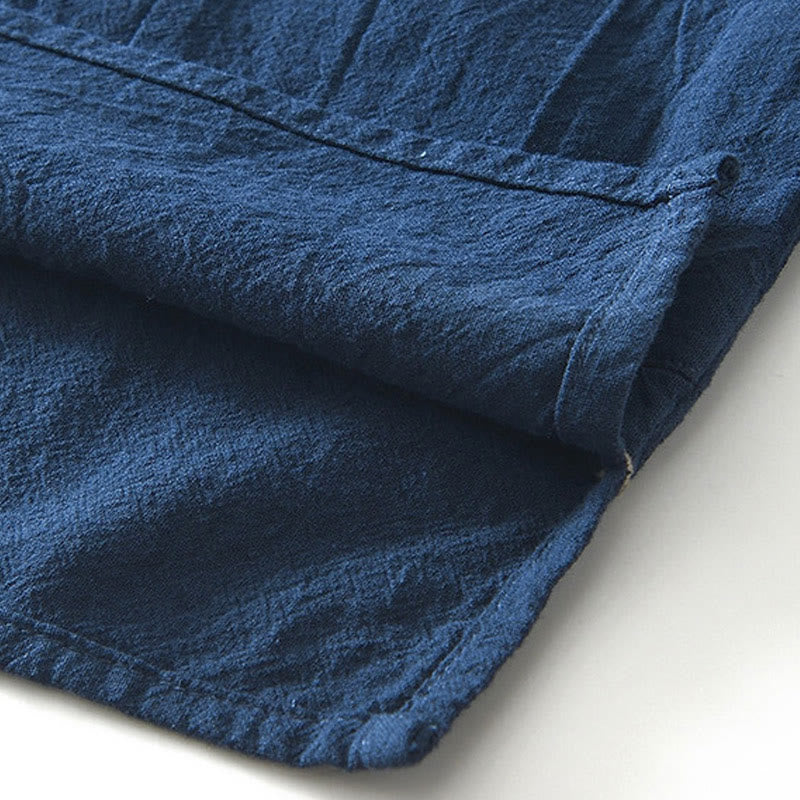 Buddha Stonesヴィンテージ無地シンプルデザインメンズ半袖コットンリネンシャツポケット付き