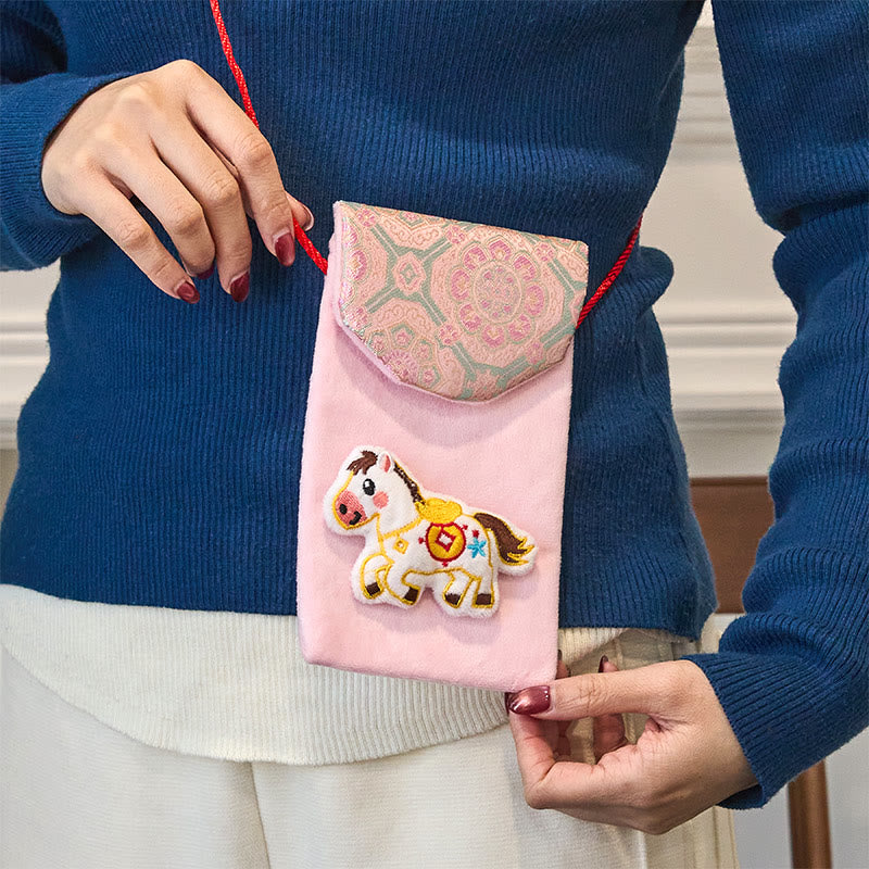2026年午年丑年Buddha Stones新年 福文字 インゴット 模様 刺繍 中国の赤い封筒 - インゴットホースレッド封筒(10.5×18.5cm) - image 0