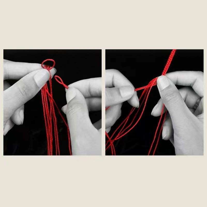 チベット密教の伝統では、儀式の際に手首に紐や紐を巻くことが一般的です。伝統的に、ラマ僧は紐を祝福し、結び目を作り、マントラを込めます。他の伝統と同様に、これらの赤い紐は幸運をもたらし、守護をもたらすと言われています。古代中国の伝説では、運命の赤い糸は目に見えないもので、人生が絡み合うすべての人々を結びつけます。これは中国の縁結びの神である月老によって支配されており、結婚する運命にある二人の絆と深く結びついています。歴史を通して、そして様々な哲学において、赤い紐は守護、信仰、幸運、強さ、そして繋がりのために身に着けられてきました。