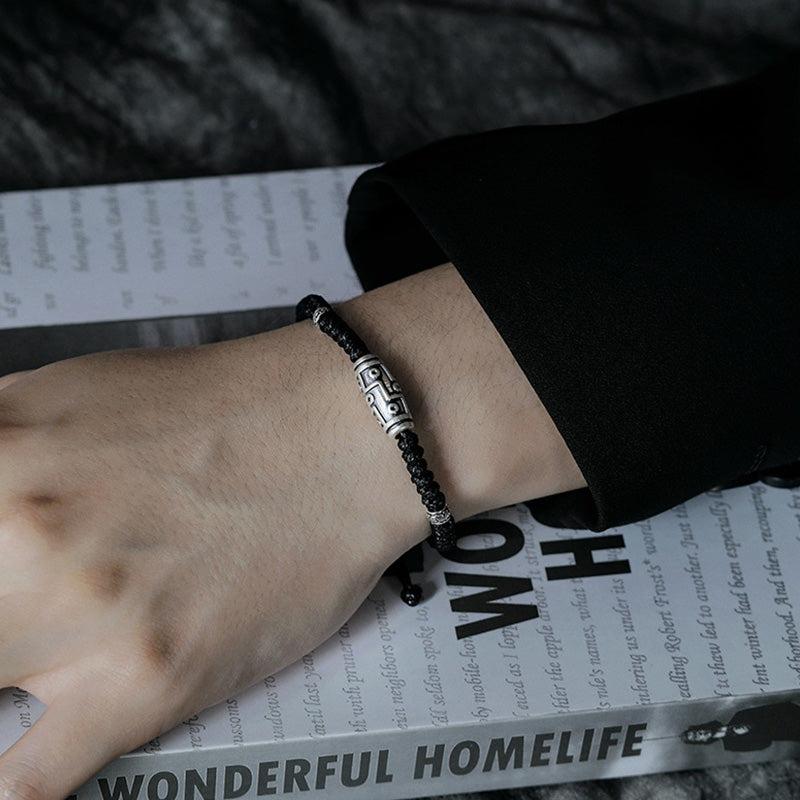 Buddha Stones999 スターリングシルバー 九眼 Dzi ビーズパターン 祝福ロープブレスレット