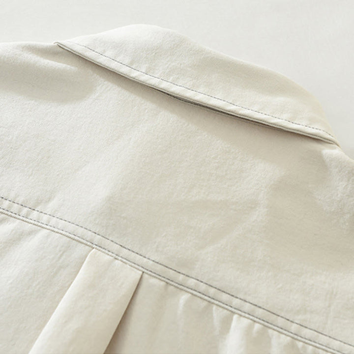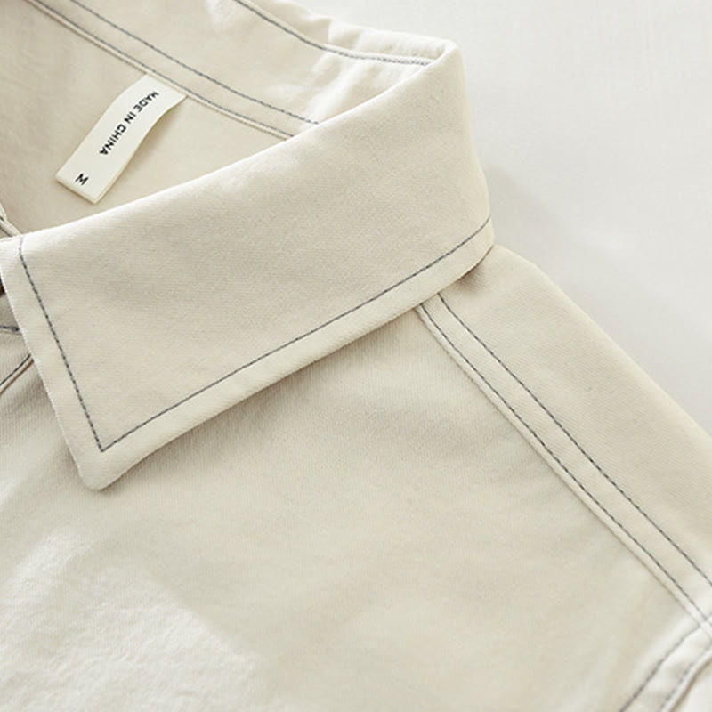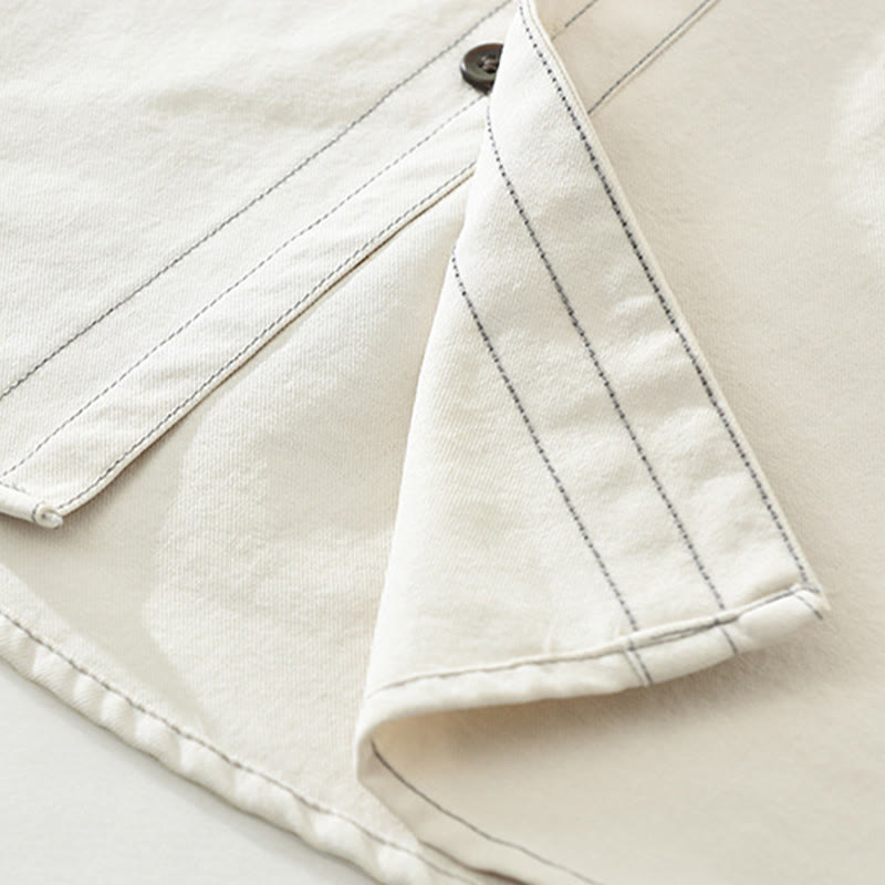 - シンプルなデザイン: 衣服にはボタンのデザイン要素が採用されています。