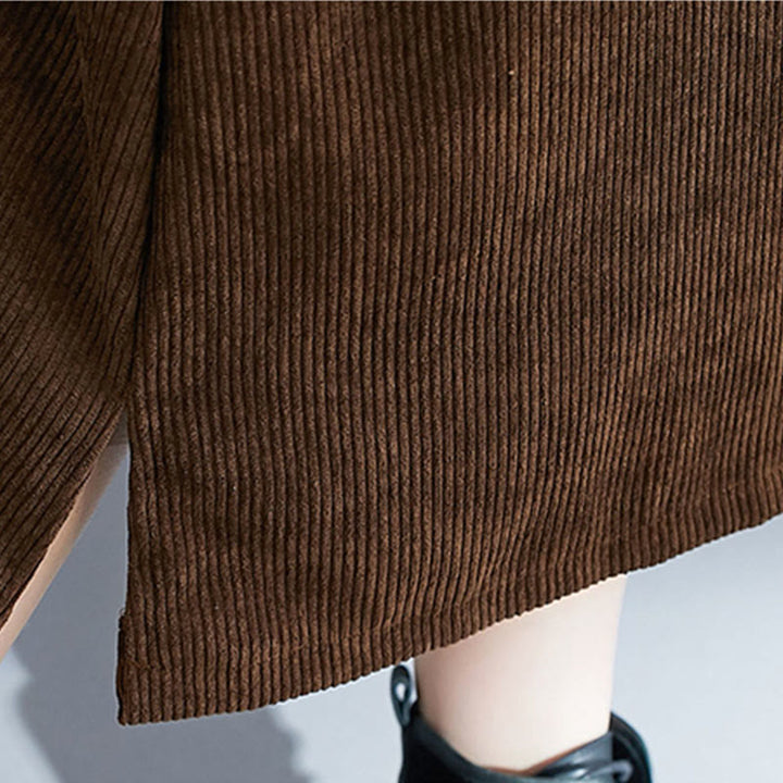 Buddha Stones通勤用クルーネック レディース ノースリーブ コットン コーデュロイ ミディドレス ポケット付き - サドルブラウン - US12、 UK/AU16、 EU44 (2XL) - image 0