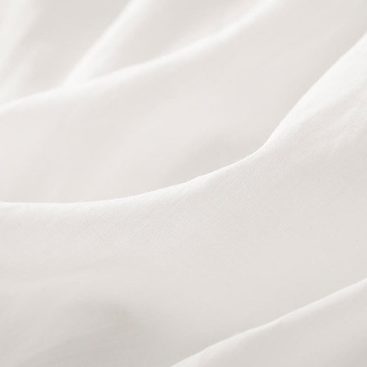 Buddha Stones通勤用刺繍プリーツボタンドローストリングデザインコットンリネンフリル半袖ミディドレス - 白 - US8-10,UK/AU12-14,EU40-42 (2XL) - image 0