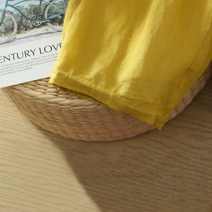 Buddha Stones通勤用 純色 シンプルデザイン レディース コットンリネン アンクル丈 ハーレムパンツ ポケット付き - 金 - US8-10,UK/AU12-14,EU40-42 (2XL) - image 0