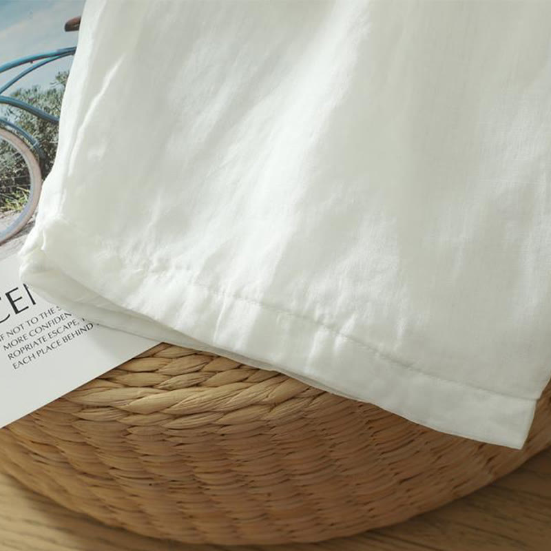 Buddha Stones通勤用 純色 シンプルデザイン レディース コットンリネン アンクル丈 ハーレムパンツ ポケット付き - 白 - US8-10,UK/AU12-14,EU40-42 (2XL) - image 5