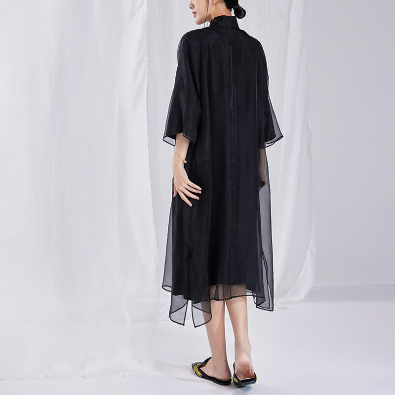 優雅さとスピリチュアルさが魅惑的に融合した、Buddha Stones100%マルベリーシルク6匁チャイナドレス。ヴィンテージの花と蝶の刺繍が施されたこのドレスは、最高級の6Aグレードシルクを使用し、比類のない快適さとスタイルを提供します。様々なシーンにぴったりで、前向きな変化の象徴です。