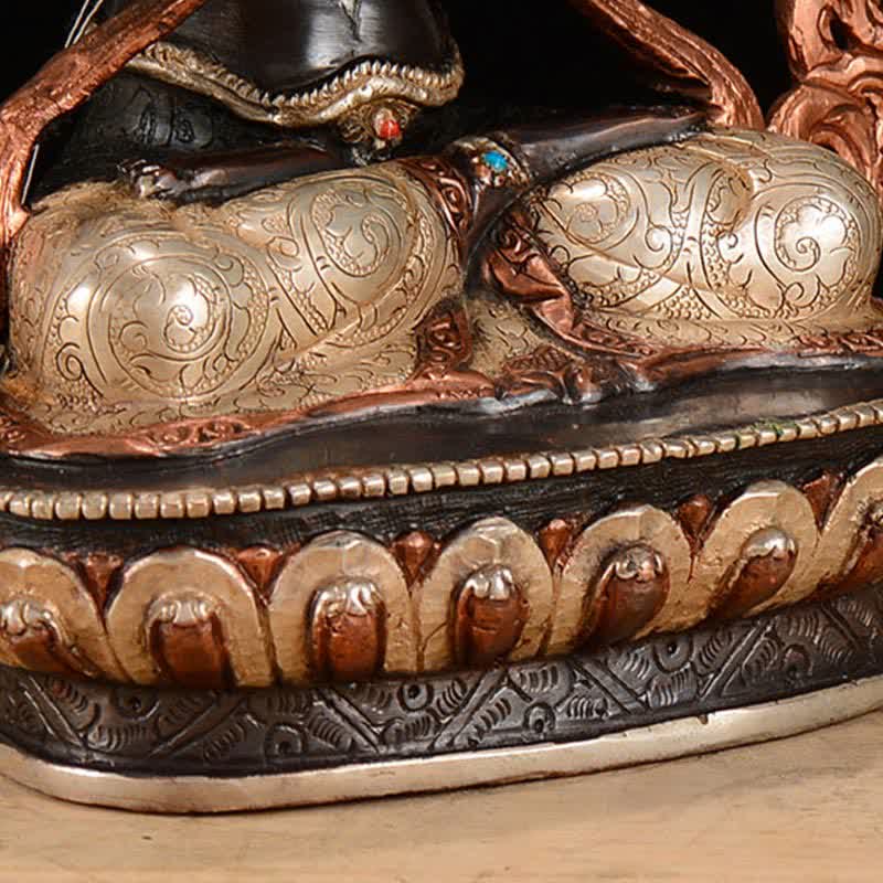 • 銅像はすべて金鍍金技法を用いて製作されます。鋳造後、熟練の職人によって細部まで丁寧に手作業で彫刻され、最終的に金メッキが施されます。最後に、チェンレジの顔が金彩で彩色されます。