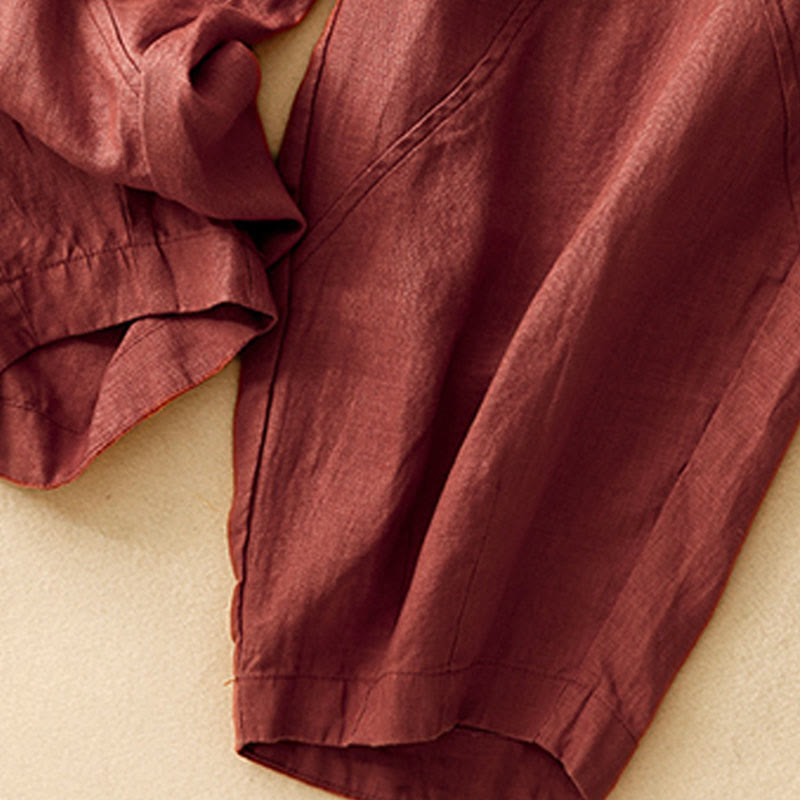 Buddha Stonesカジュアル 無地 クロップドパンツ レディース コットンリネン ハーレムパンツ ポケット付き - マルーン - US8-10,UK/AU12-14,EU40-42 (2XL) - image 15