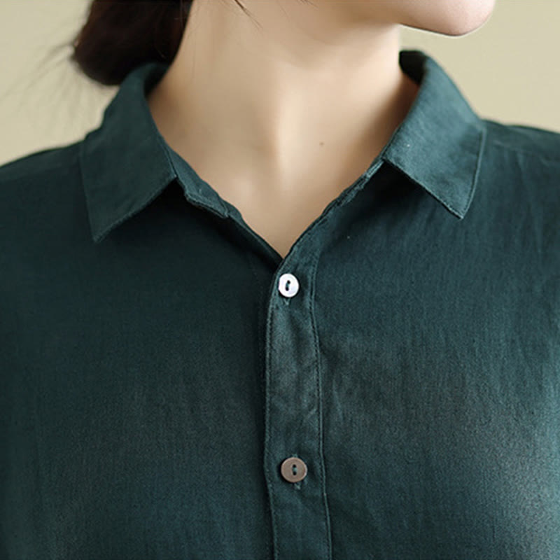 Buddha Stonesサマー 無地 半袖 ドローストリング コットンリネン ミディドレス ポケット付き - ダークグリーン - US8-10,UK/AU12-14,EU40-42 (2XL) - image 6