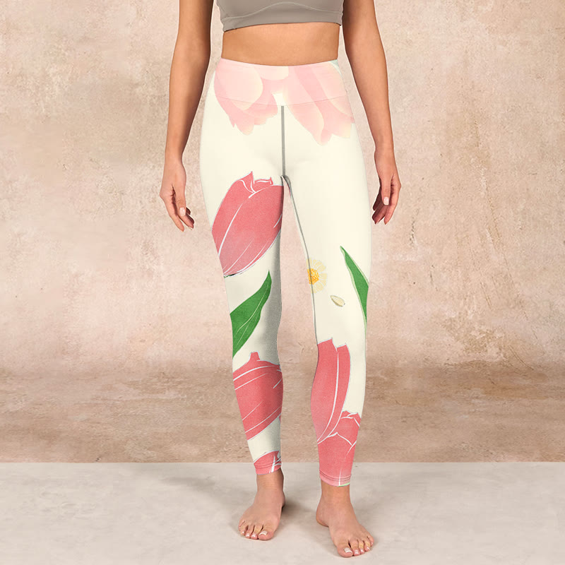 ピンクのチューリップフラワーヨガパンツは、鮮やかなチューリップの花柄が特徴で、快適なフィット感と柔軟なサポート力を提供します。柔らかな生地が体の動きに合わせて動き、ヨガやフィットネスに最適です。このパンツは、ヨガ中に落ち着きとポジティブな気持ちをもたらし、マインドフルネスと感情のバランスを整え、自然な美しさと再生を表現しています。💕