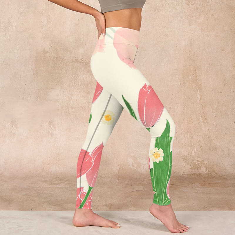 - デザインインスピレーション:このレギンスには、愛情、称賛、そして幸運を象徴するピンクのチューリップの花がデザインされています。ピンクのチューリップは愛と献身のメッセージを伝え、心からの感情と特別な瞬間を祝う喜びを美しく表現しています。