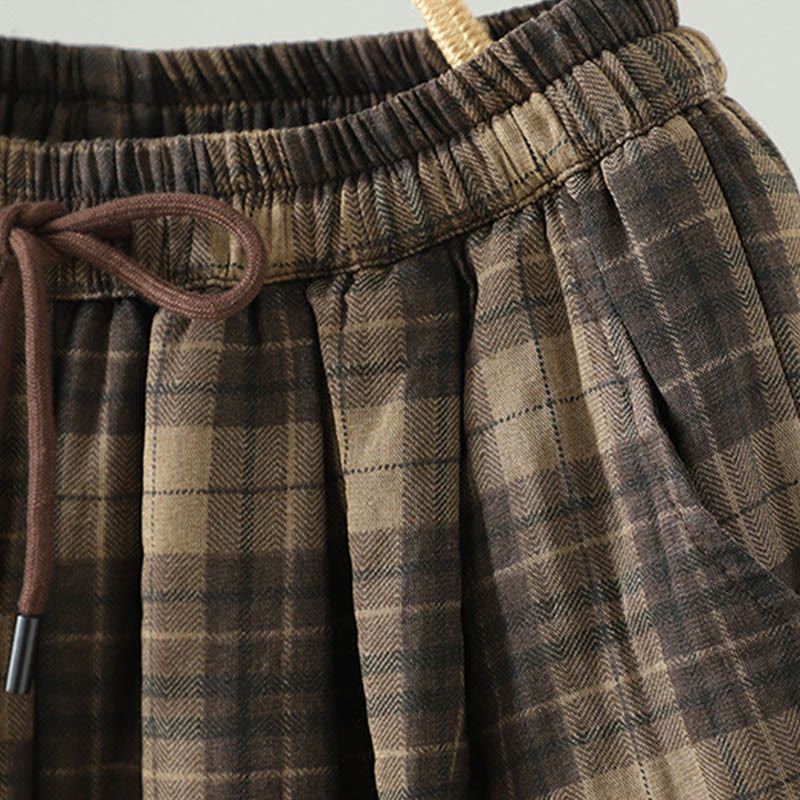 Buddha Stonesマルチカラー チェック柄 コットンパッド レディース ハーレム サーマルパンツ ポケット付き - image 1