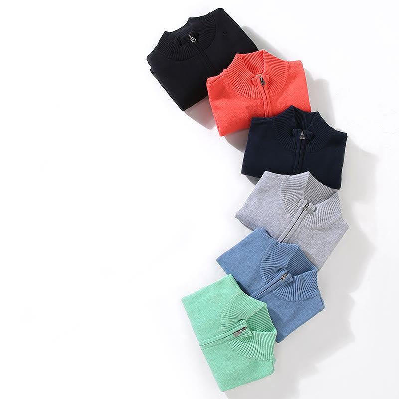 Buddha Stonesリブ編み 無地 裾デザイン メンズ モックネック 長袖 ピュアコットン セーター - 海軍 - US/UK/AU42、 EU52 (3XL) - image 0
