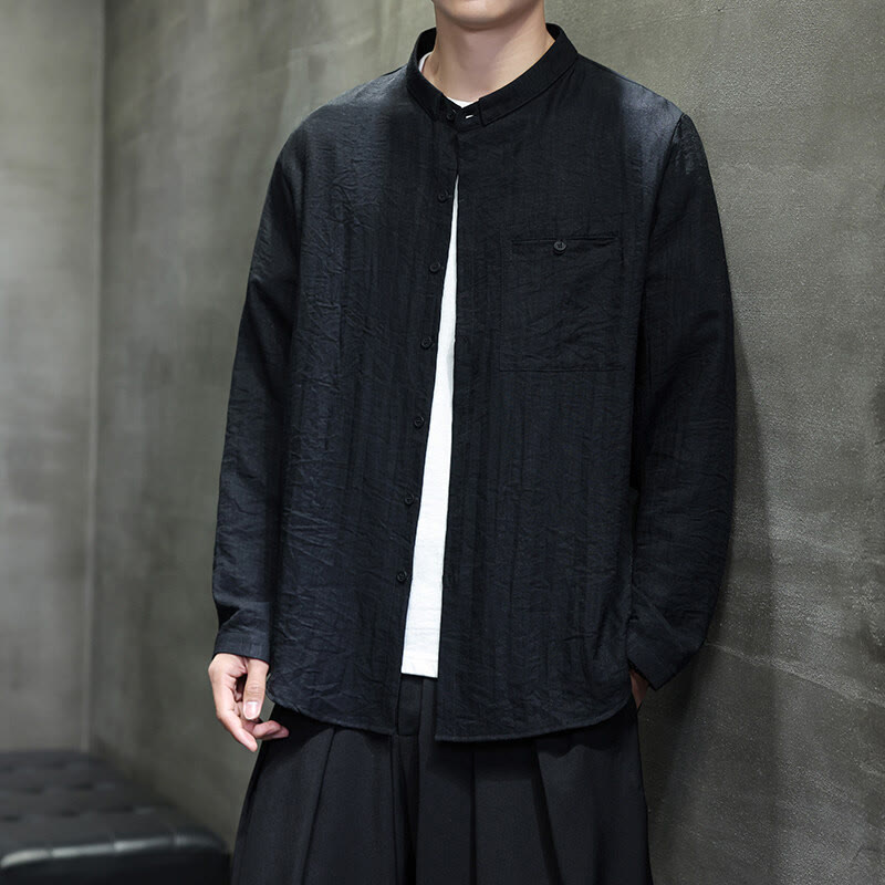 Buddha Stones春のメンズ 無地ボタンデザイン 長袖シャツ