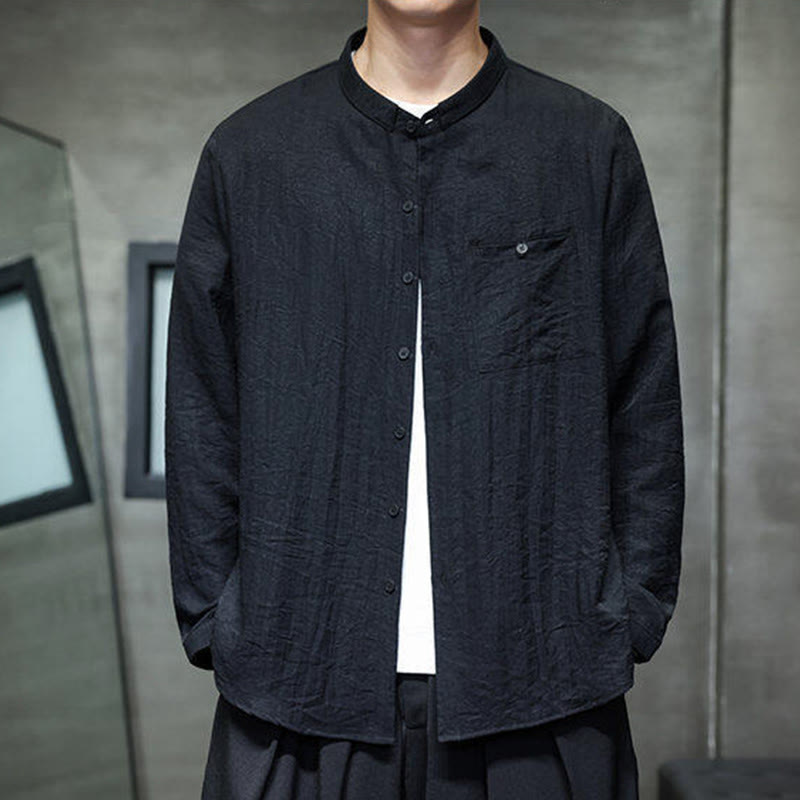 Buddha Stones春のメンズ 無地ボタンデザイン 長袖シャツ - image 1