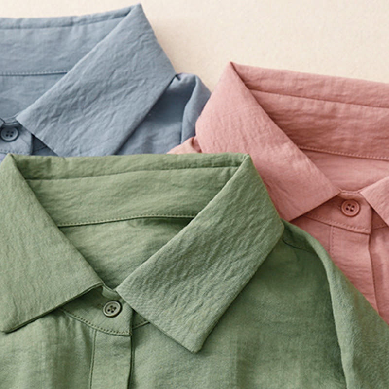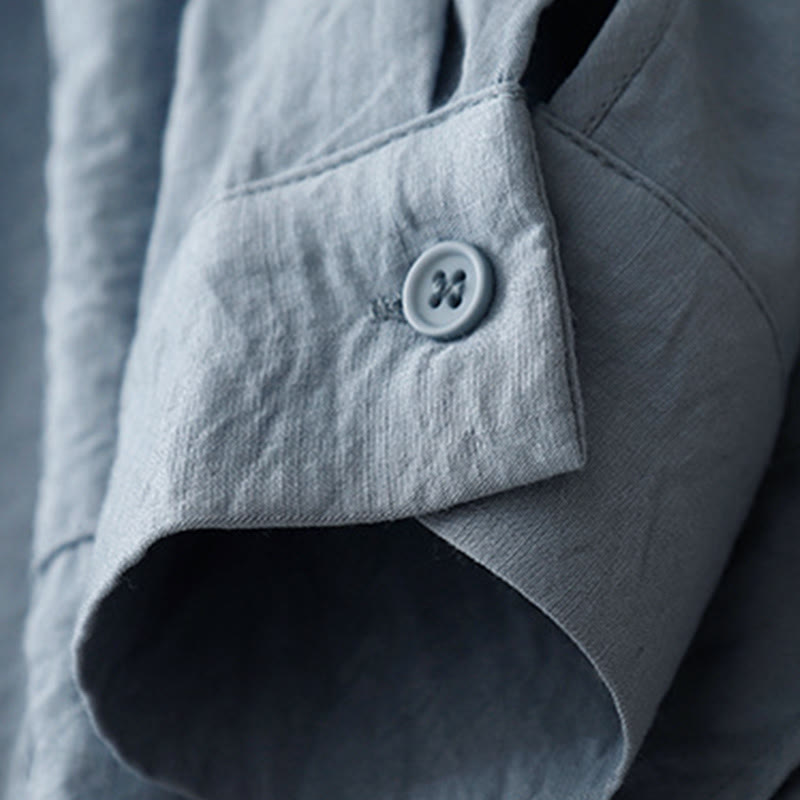 Buddha Stones春秋 スタンドカラー 無地 長袖 レディース コットン ポリエステル シャツ  - image 10