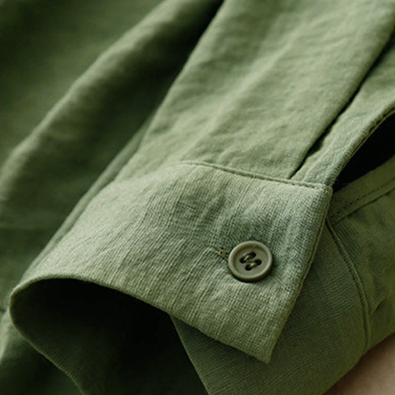 Buddha Stones春秋 スタンドカラー 無地 長袖 レディース コットン ポリエステル シャツ  - 緑 - US8-10,UK/AU12-14,EU40-42 (2XL) - image 6