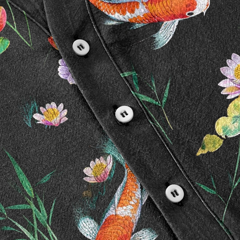 - デザイン:これらのメンズシャツは、穏やかな鯉と蓮池の模様が特徴で、調和、豊かさ、幸運を象徴しており、あなたの日常のスタイルにユニークで意味深い要素を加えます。
