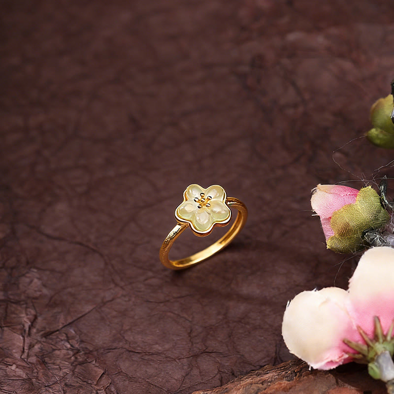 Buddha Stones 梅の花模様の和田翡翠銅製幸運リング - 和田翡翠銅(調整可能) - image 0