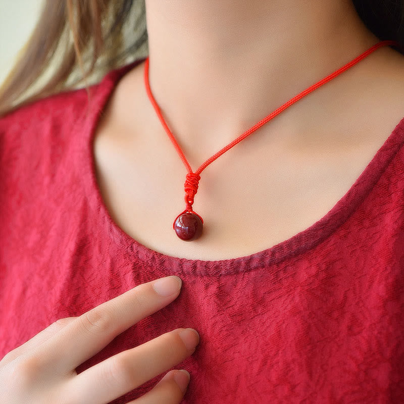 Buddha Stones 辰砂の悪霊除けネックレスペンダント - 赤いロープ - image 1