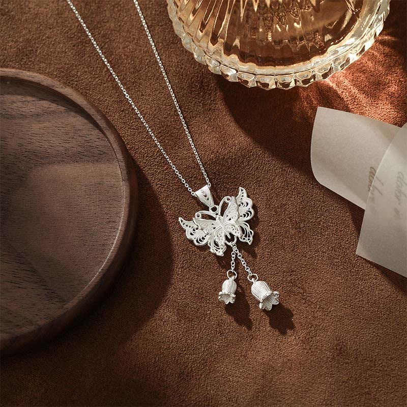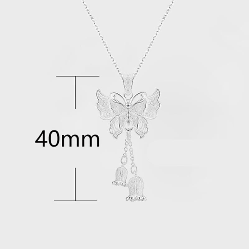Buddha Stones 999スターリングシルバー製 バタフライ スズラン フリーダム ネックレス ペンダント